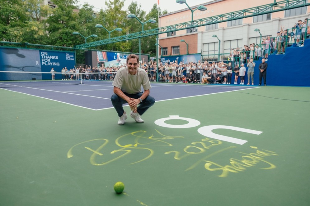 揭幕仪式后,On昂跑特邀费德勒开出“第一球”,并亲笔签名,为新球场留下专属印记。随后,费德勒更与少年球员切磋球技并悉心指导,传递对网球的热爱。