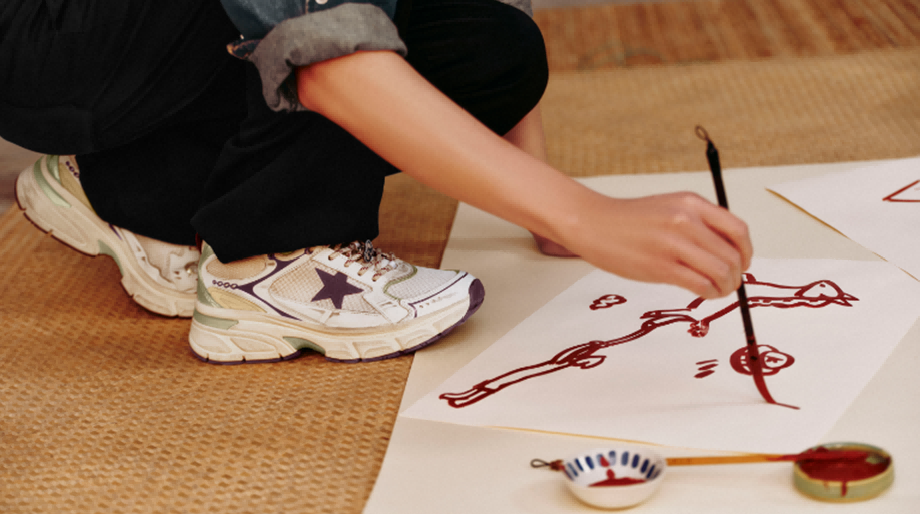 艺术家Bolin以融合传统水墨与抽象概念的独特创作著称,擅以传统水墨技法,演绎抽象的概念艺术。本次合作中,他为 Golden Goose特别创作专属视觉图案。作品灵感源自“马”所代表的随心不羁与自由精神,与品牌所倡导的自我表达与无界逐梦理念高度契合。艺术家在创作中巧妙融入品牌基因、生肖寓意与新年气息。