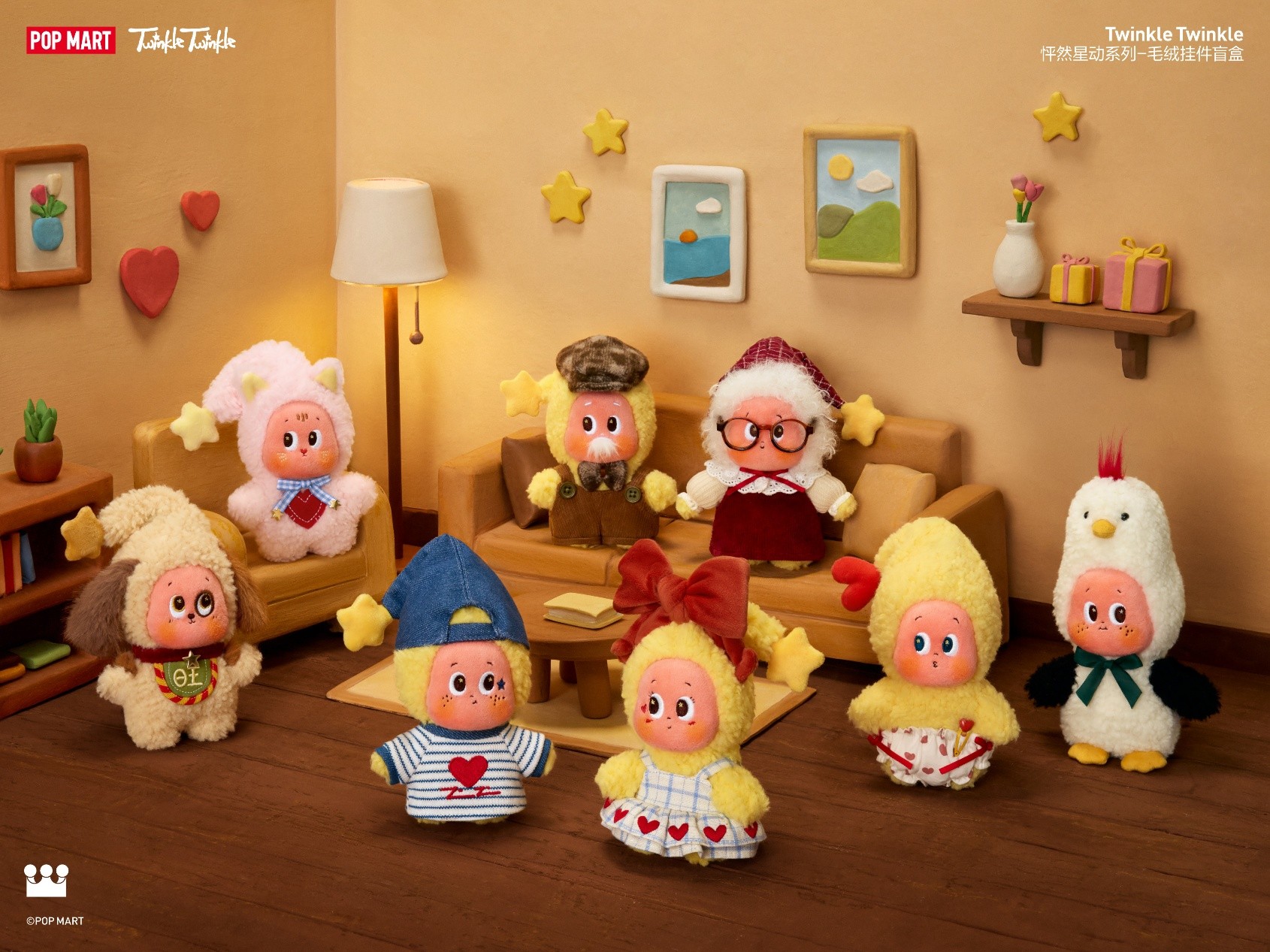 该系列涵盖毛绒挂件盲盒、搪胶毛绒公仔礼盒、手办及多元衍生品,以星星人独有的童真视角,深入解读爱的多元宇宙——爱不仅仅局限在两者之间,它可以是自我的深度和解,可以是来自他人的无私关怀,更是那些如星光般细碎、却足以照亮生活的彼此奔赴。
