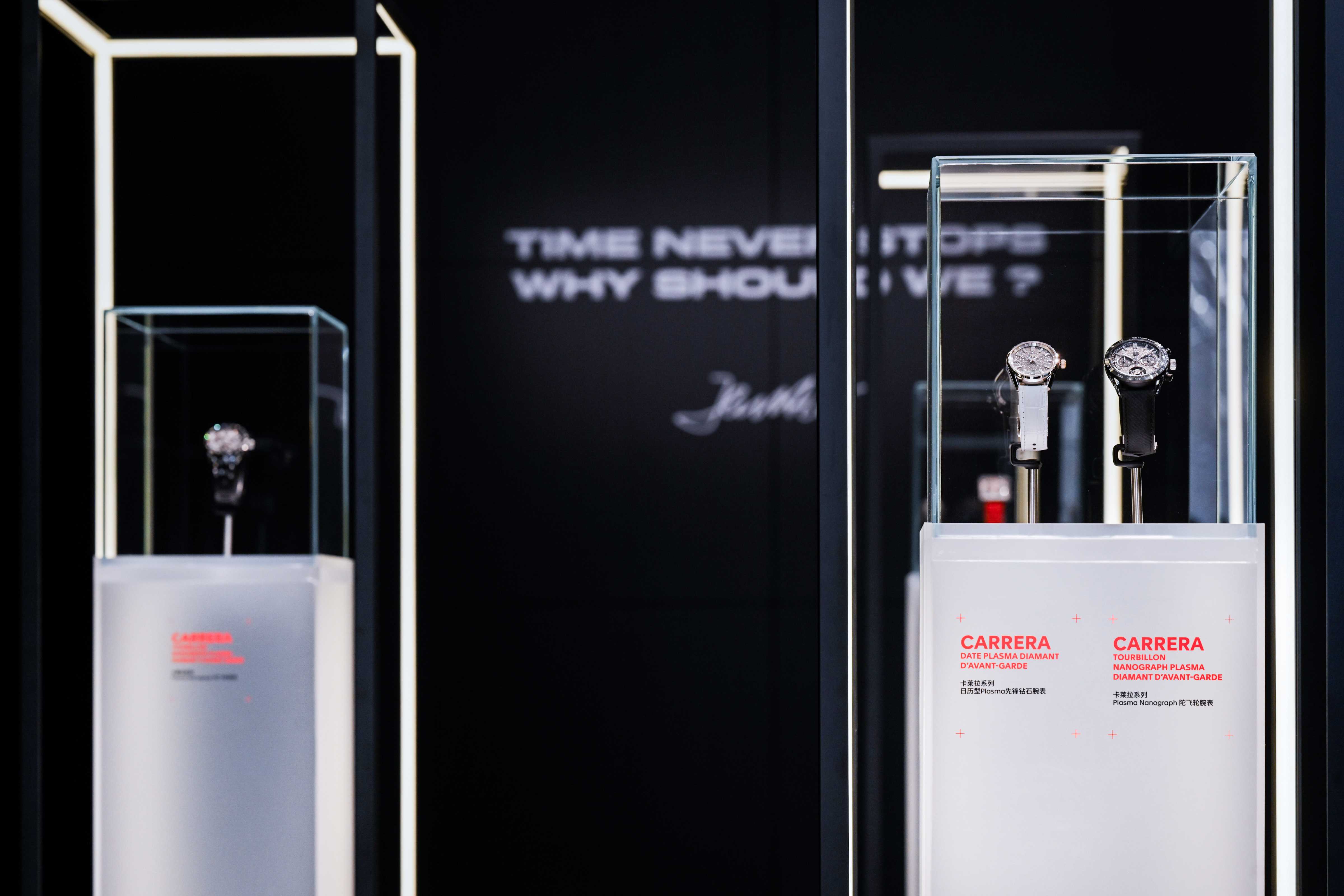 在当代展厅空间中,一系列精心甄选的先锋杰作将泰格豪雅的传奇历史带入当下。这些时计作品融汇品牌深厚的赛车基因与精湛的制表工艺,彰显泰格豪雅对卓越性能与优雅格调的独特平衡。