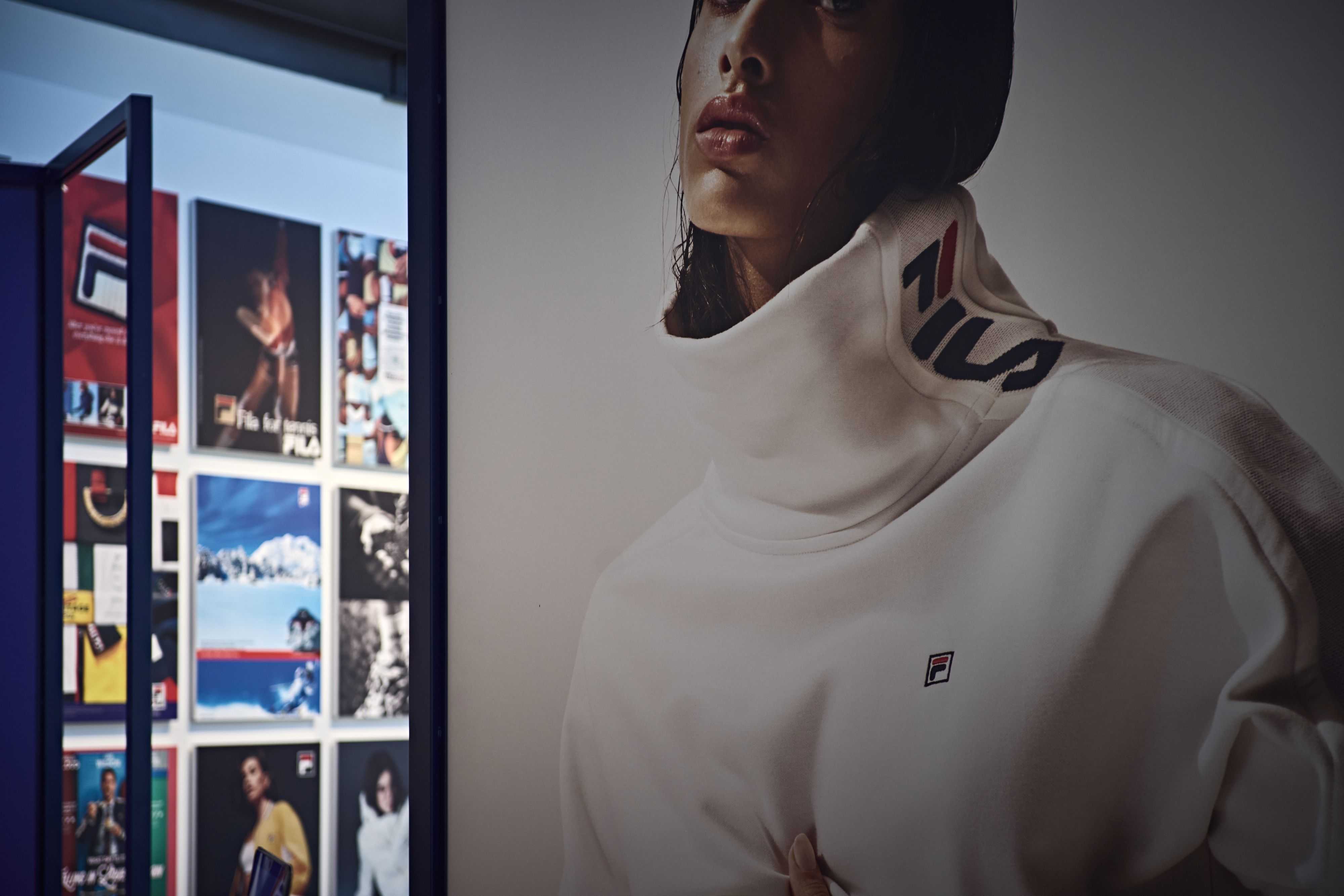 鞋履主题展区全方位展现了FILA在鞋类领域的发展旅程,重点呈现品牌于20世纪90年代融入街头文化的突破性发展。最终,这场探索之旅于FILA打破时尚与运动之间界限的先锋精神中落幕。凭借与芬迪(FENDI),Y/Project,海德·艾克曼(Haider Ackermann),Roksanda,海莉·比伯(Hailey Bieber)等知名品牌和人物的标志性联名合作,FILA创造出既征服时尚界又风靡日常街头场景的混合风格。这一系列成功的合作及深入人心的传播活动,帮助品牌构建了一个极具冲击力的视觉宇宙,将运动服饰升华为文化表达的真实载体。