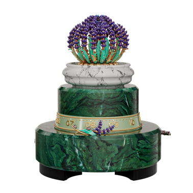 Van Cleef & Arpels梵克雅宝以全新Brassée de Lavande“蝶恋薰衣草”自动机械装置,延续2022年Rêveries de Berylline“绿蜂鸟之梦”自动机械装置奠定的美学基调。Brassée de Lavande“蝶恋薰衣草”自动机械装置于世家位于瑞士圣克鲁瓦的机械艺术工坊组装而成,以迷人场景致敬自然奇观,颂扬世家珍视的Poetry of Time“时间的诗篇”。装置历经数年研发,凝聚世家不同领域的能工巧匠,将动态机械装置与音乐韵律巧妙结合,谱写出新一阕动人篇章。Brassée de Lavande“蝶恋薰衣草”自动机械装置之上,向内轻柔蜷曲的漆艺玫瑰金枝条合拢成一座蕴藏秘密的华丽绿穹。36根薰衣草茎呈双行排布,层层交叠、错落有致,交织出丰富细腻的层次感。纤柔绿叶与靛蓝花朵点缀其间,两种色调彼此交融、相映成趣。