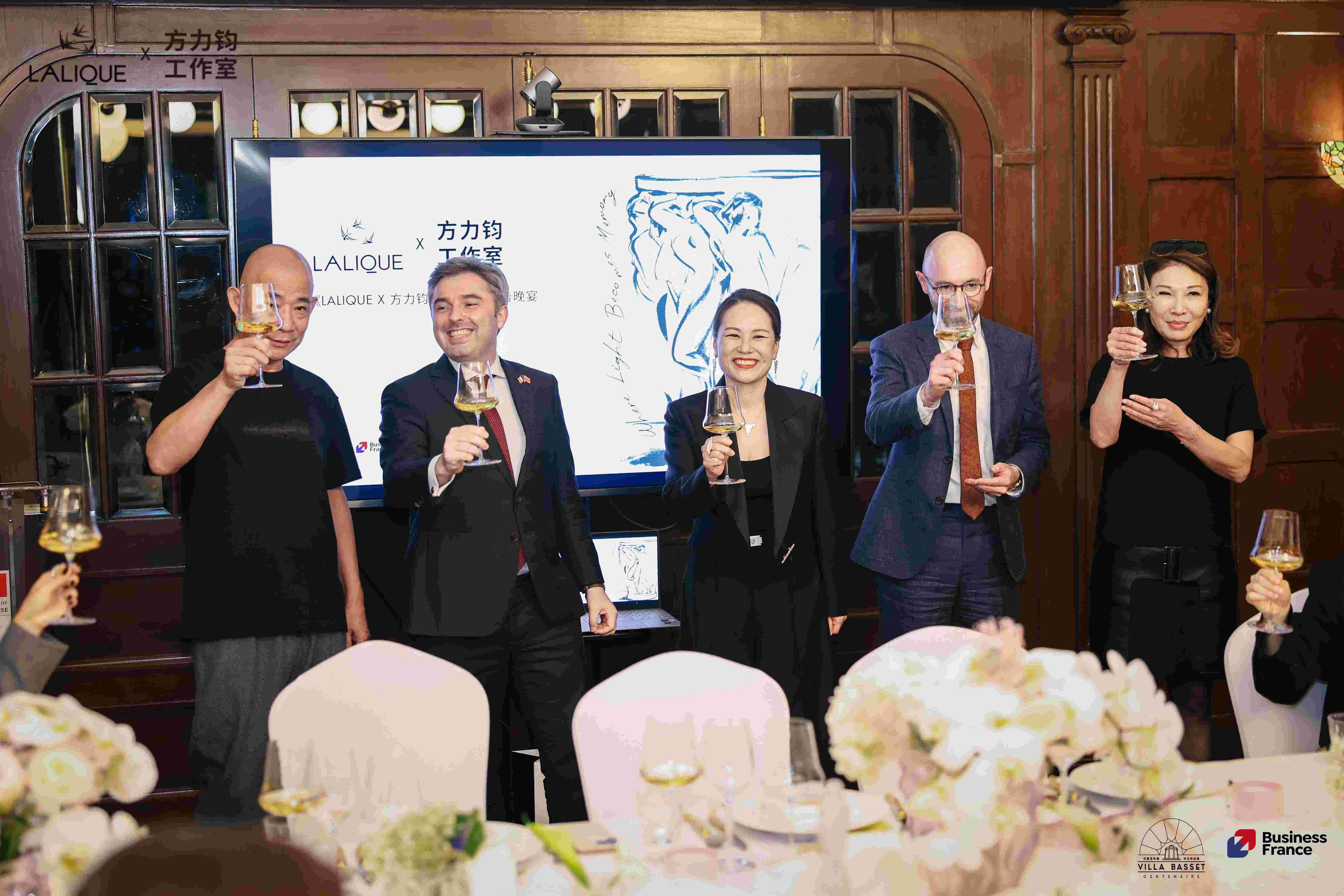 2025 年 11 月 21 日,法国殿堂级水晶品牌莱俪(LALIQUE)于上海巴赛别墅(淮海中路 1431 号)—— 法国驻上海总领事馆官邸,盛启 “LALIQUE × 方力钧联名作品”预告晚宴。这座始建于 1921 年的建筑,以新古典主义风骨融合佛拉芒式屋顶形制,成为中法文化交融的标志性地标,为这场跨越时空的艺术之约铺就深厚底蕴。中法文化界、艺术界、时尚界数十位重磅嘉宾齐聚一堂,共同见证品牌与中国当代艺术家方力钧长达十载的匠心坚守,预告核心合作作品将于 2026 年 3 月全球首发。法国驻上海总领事王度(Joan Valadou)先生及夫人、莱俪亚洲区总经理萧梦珊女士、艺术家方力钧先生亲临现场,共证这场 “时光与匠心的双向奔赴”。