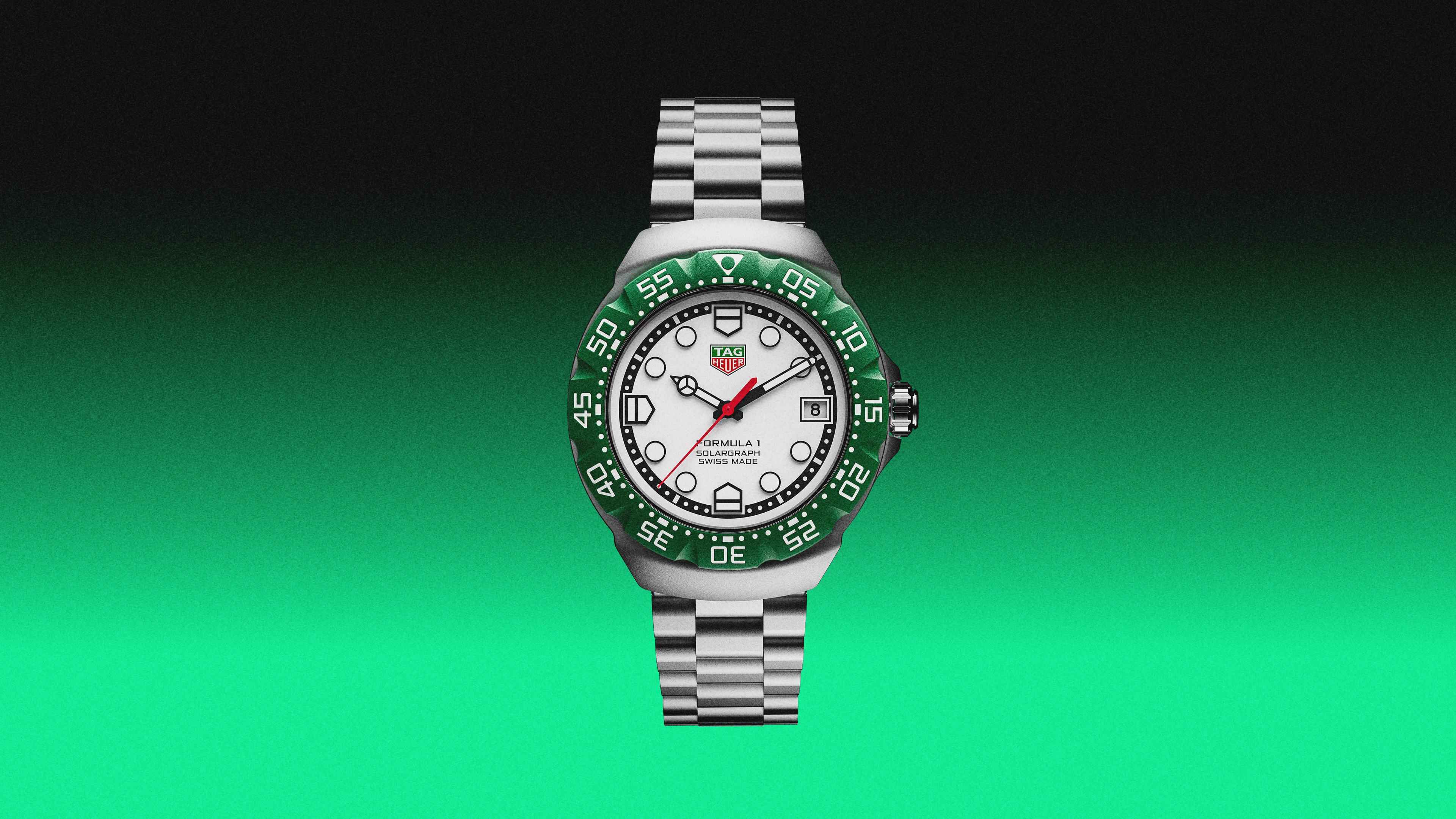 作为 F1® 世界锦标赛官方计时,瑞士先锋制表品牌 TAG Heuer 泰格豪雅于年末再次揭晓一款全新配色的 F1 系列 Solargraph 太阳能腕表。延续 38 毫米标志性尺寸,这款时计以绿色表圈点睛白色表盘,复刻 F1® 维修区时钟的经典构型,凭借 Solargraph 太阳能机芯与 TH-Polylight 创新材质的双重赋能,为新一代赛车运动爱好者献上腕间竞速新图腾,践行 “逆势而上,胜势由我 - DESIGNED TO WIN” 的品牌箴言。