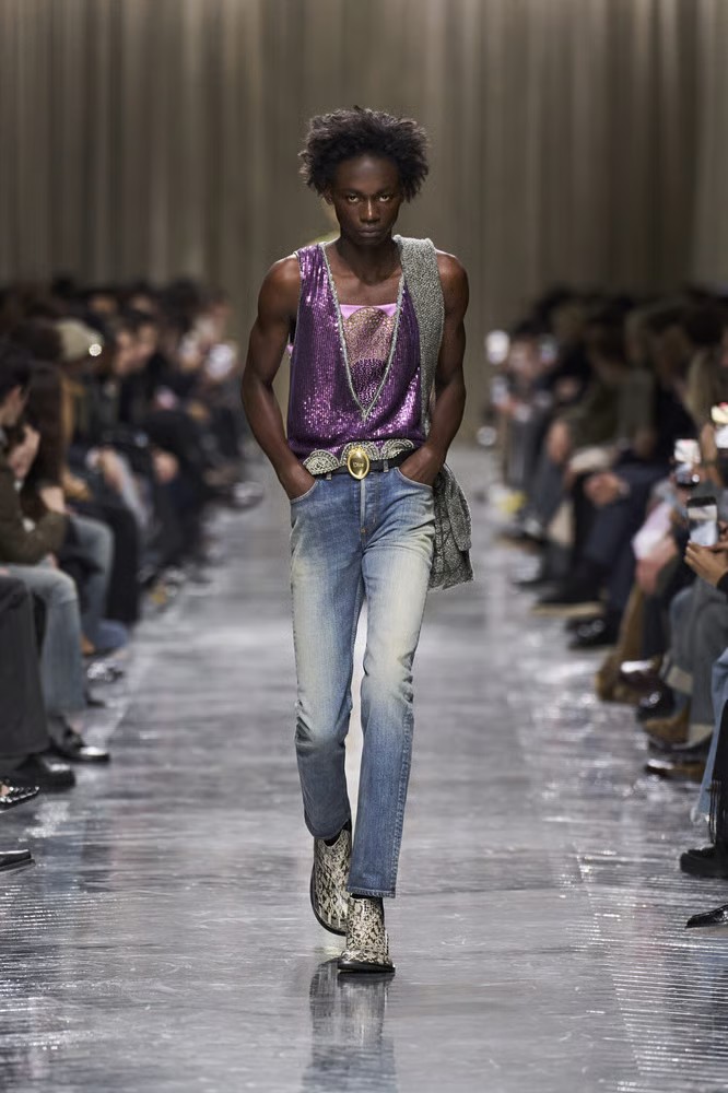 不得不令人赞叹 Jonathan Anderson 强大的行业号召力。本季在 Pitti Uomo 和米兰男装周上风靡的多色粗花呢(Donegal Tweed)趋势,正是由 Anderson 在去年六月的 Dior 首秀中一手引爆。可以预见,本季他所痴迷的亮片、银色军装肩章以及金属质感蕾丝,必将成为 2026 年 6 月男装秀场上竞相效仿的对象。