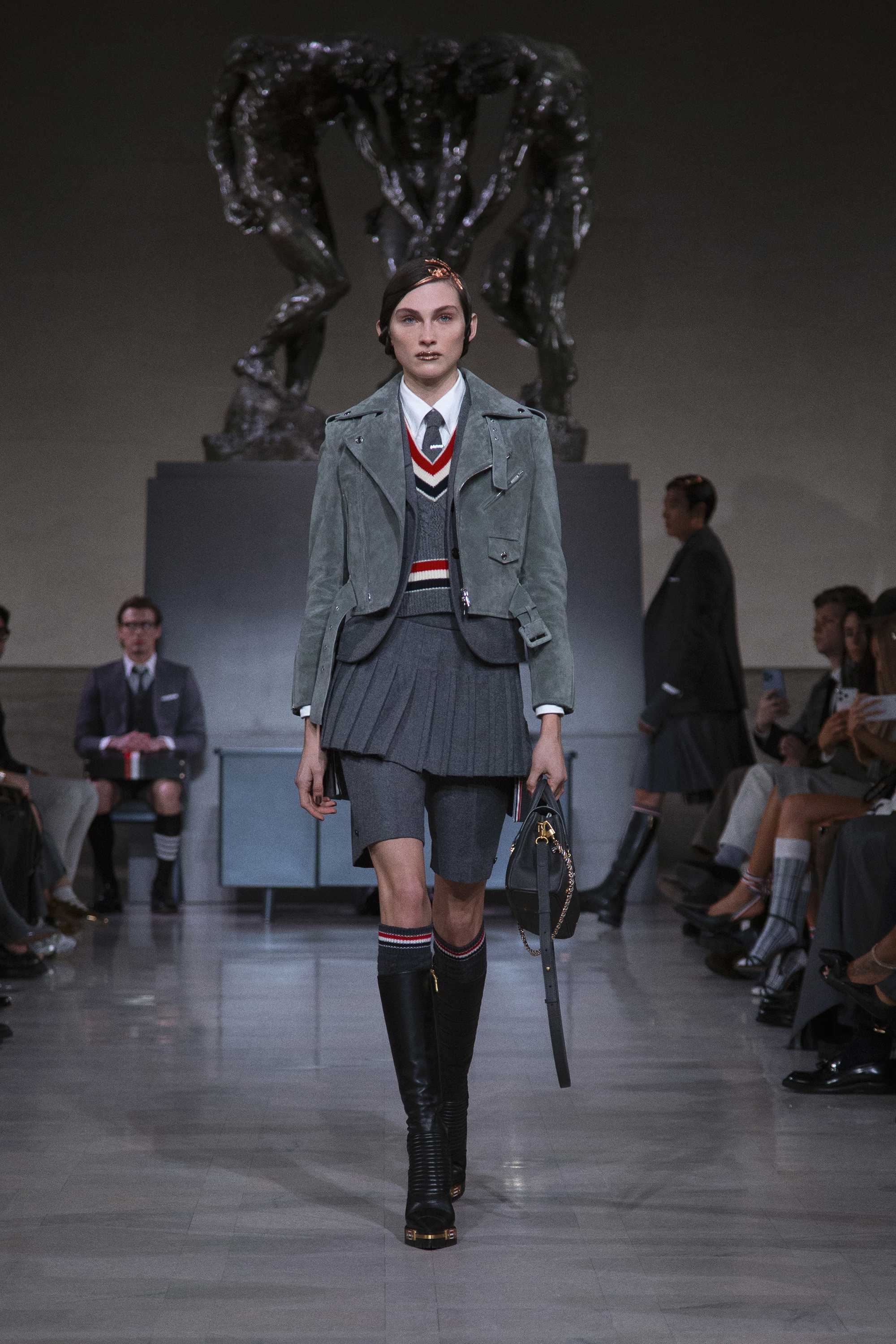 thom browne于旧金山荣誉勋位宫博物馆,在奥古斯特・罗丹(auguste rodin)的青铜雕塑《三个影子》下,正式发布 2026 秋冬系列。旧金山连绵的山峦与经典的城市景致,为这场秀定下独特基调。本次大秀于第六十届超级碗赛事前启幕,特邀 NFL(美国国家橄榄球联盟)球星德安德烈・霍普金斯(deandre hopkins)、贾斯汀・杰弗森(justin jefferson)等登台亮相,创作灵感皆源于对极致卓越的不懈追求。