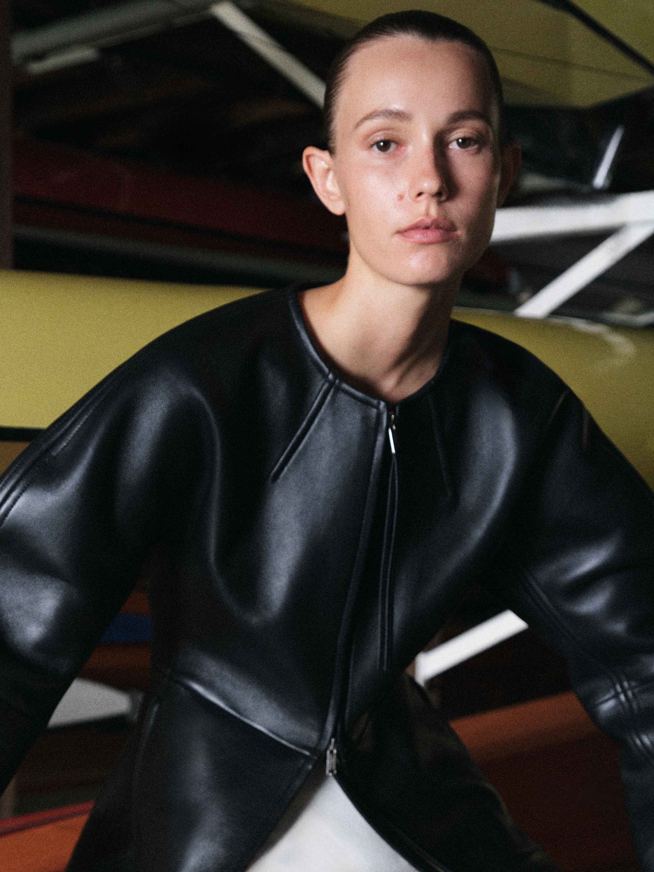潋滟的水波为斜裁连衣裙上层叠垂坠的光滑缎面注入灵感,而略带光泽的牛仔面料则以ARKET标志性的方式被重新演绎。T恤、风衣等经典单品也沿用同一理念,经过精心改造与重塑,呈现兼具女性柔美与力量感的设计,打破常规的同时,保留鲜明的辨识度。