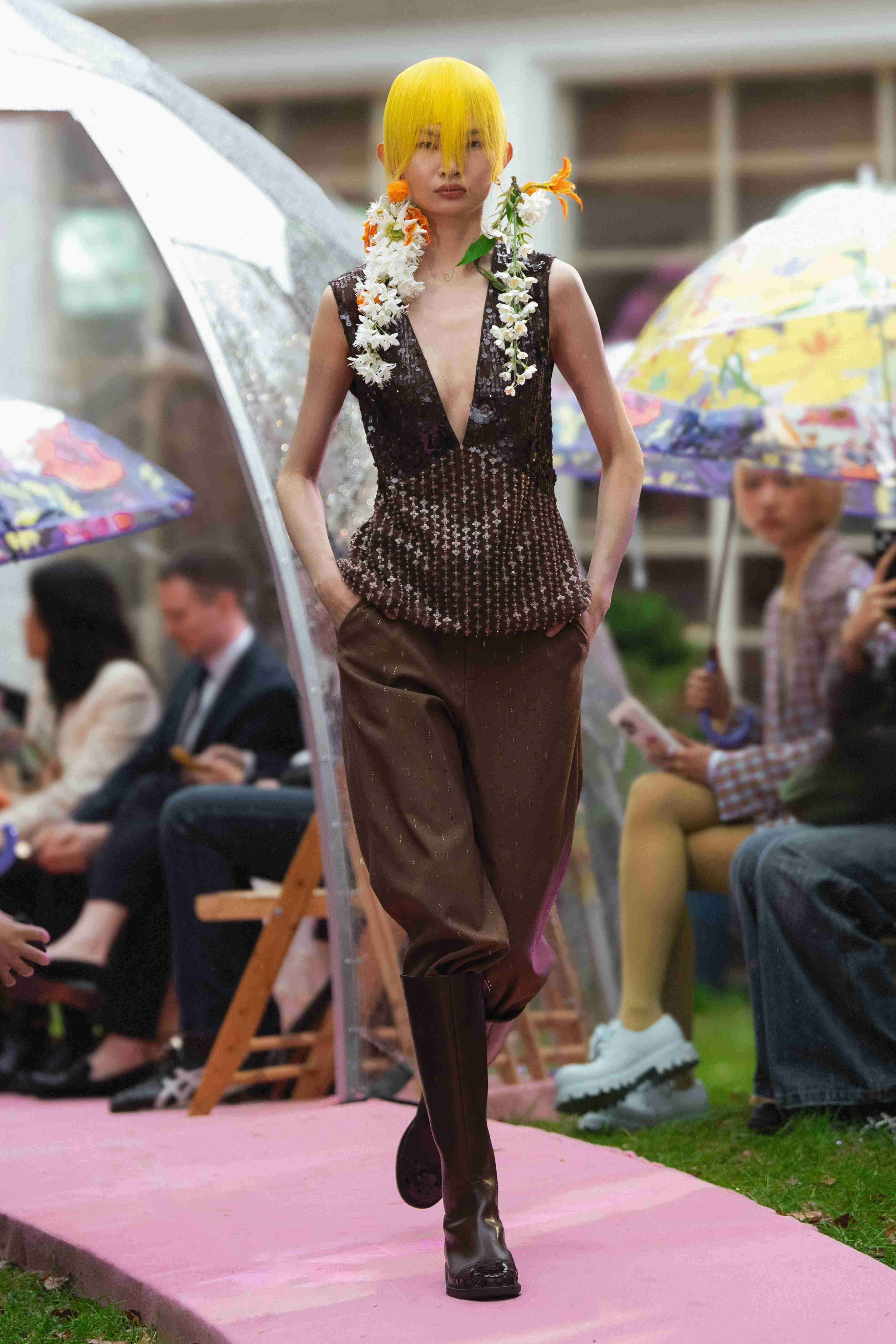 本季的创作从超现实主义的经典方法出发:并置、缩放、解构与自动化不再停留于艺术语境,而是被重新嵌入服装结构与视觉系统之中。在这场充满动态感的梦境探索场域中,设计师将私密的记忆、流动的情感与潜意识的波动,转化为直击人心的视觉符号。