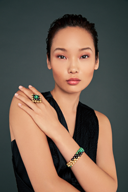 Van Cleef & Arpels梵克雅宝从世家的悠久历史撷取灵感,以圆润线条和夺目设计成就色彩缤纷的珠宝系列:Bouton d’or。世家以独有的精湛工艺,呈现珍而重之的灵感源泉——高级定制时装与大自然,将钻石与多种宝石及珍贵材质巧妙组合,镶嵌成风格大胆的作品,颂扬经典的高定珠片(Paillette)元素的圆润线条。糅合一丝不苟的选材和精心镶嵌的造型,每一件珠宝作品均把Van Cleef & Arpels梵克雅宝巧夺天工的精湛工艺发挥得淋漓尽致。