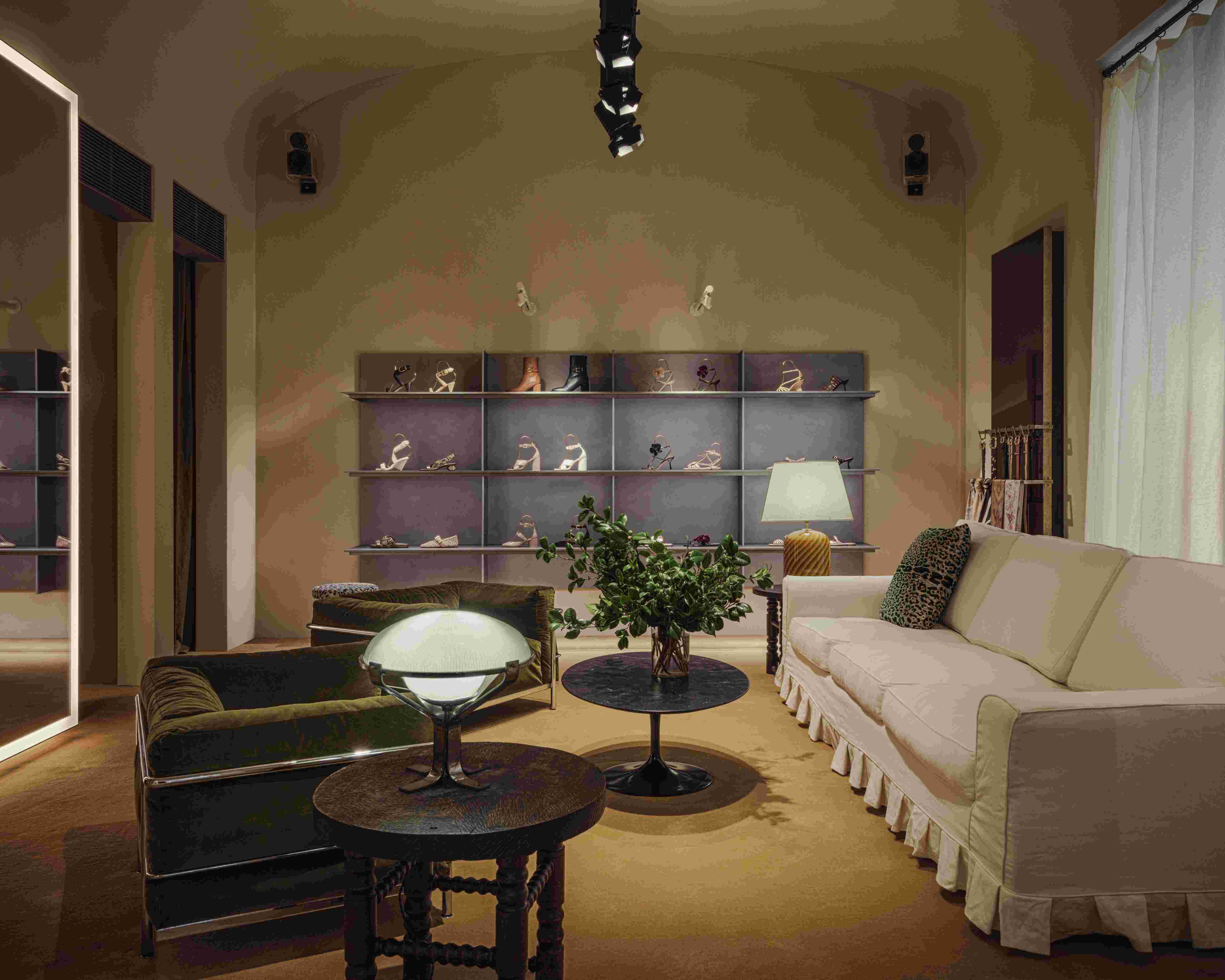 精品店空间延续品牌与长期合作伙伴McQualter工作室共同呈现的设计语言,将本地烧制的陶瓷砖、定制水磨石与复古家具巧妙融合,构筑出一方兼具本地肌理与当代韵味的雅致之境。时值新春,店铺特别呈现新年限定橱窗设计,以优雅的马纹元素与流动的金色线条勾勒新春意象,与2026春季系列中跃动的色彩和花卉印花彼此映照,共叙春意。